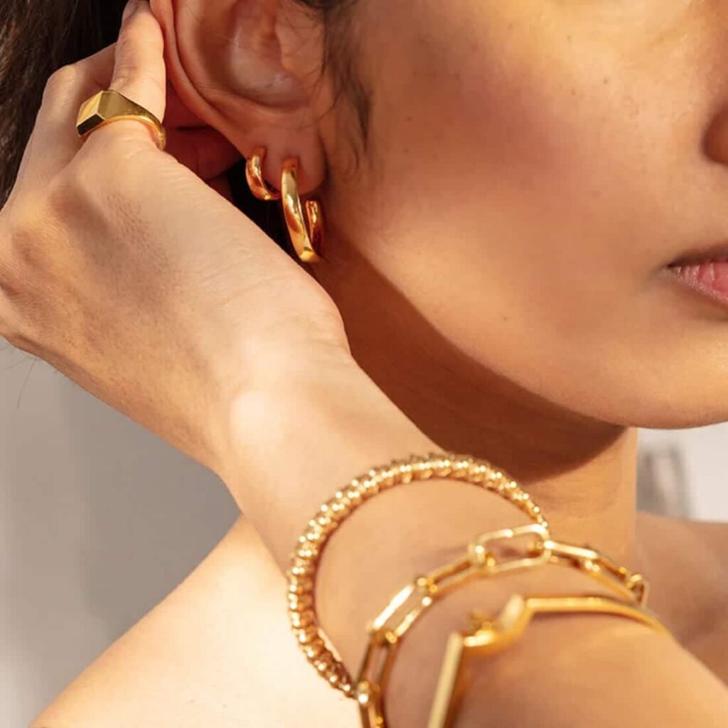 A precious and highly durable metal which comes in different golden hues depending on its purity. Every piece is handcrafted with 100% recycled gold vermeil and sterling silver, reducing CO2 emissions by over 60%. Turns out the best things really do come in small packages. . To avoid contamination by contact, store the piece away from any metal that might cause it to rust. Avoid scrapes and scratches, as the plating is applied only to the surface of the piece. Clean with water, pH-neutral soap and a small brush.